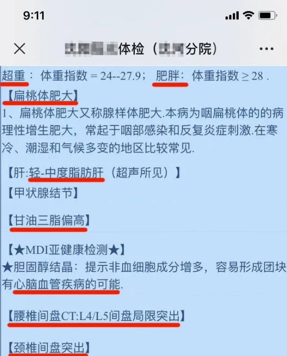 仅仅25岁,他的健康状况就如此令人担忧。报告中也明确指出:需要清淡饮食、加强运动、减脂减重。