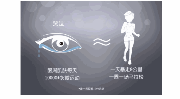 人体皮肤中,最先进入衰老期的是眼周肌肤。睁眼、眨眼、微笑、哭泣……眼周肌肤每天会进行10000次微运动,相当于腿部肌肉暴走8公里,一周一次马拉松的运动量!