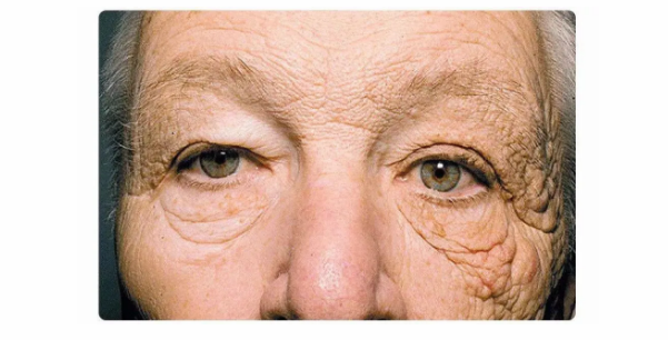 这是外国一位女性卡车司机的左右脸对比图。由于长期行驶于固定路线,她的右半侧脸受到了更多的日晒,经年累月的光老化刺激下,右侧肌肤下垂更加明显,皱纹也比左侧脸多。一张脸,却像是有两个年纪。