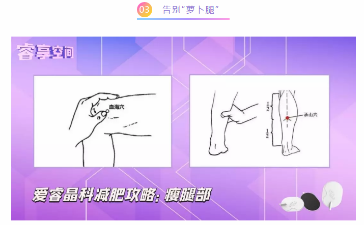 ※腿部减脂,除了用圆形帖刺激穴位外,别忘了搭配LED波动温热脚板使用,达到事半功倍的效果。