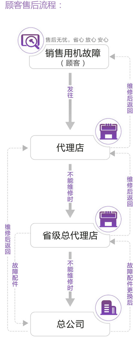 若排除了误操作的原因,可以按照以下流程进行售后服务。建议您先致电代理店销售人员,他/她将按照睿享空间总公司的服务原则,为您提供周到的售后服务。