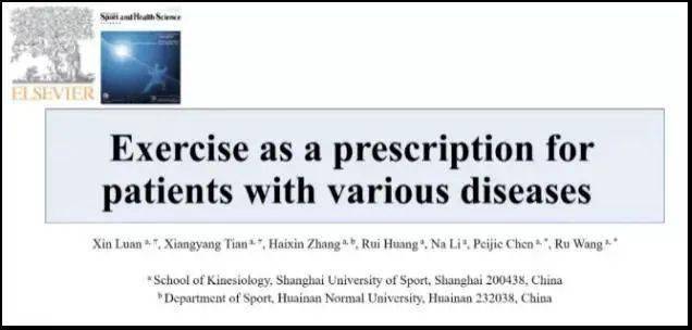2019年8月,由上海体育学院运动科学学院和淮南师范大学体育系的专家共同发表的《26种人类疾病的运动干预指导方案》,刊登在《运动与健康科学》(JSHS)英文版上,研究人员通过对26种疾病的运动干预证实,运动可对疾病的预防和康复发挥积极作用。